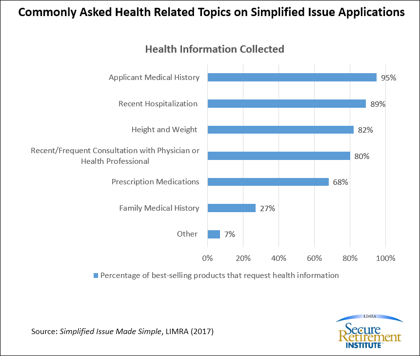 Simplified issue products keep the application process simple. Companies who sell these products rely more on the information provided in the application than on data collected from external sources. The simplified issue applications typically ask some health-related questions as well as lifestyle questions.