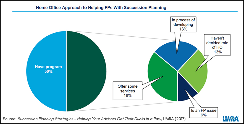New LIMRA research finds that 63 percent of financial services companies surveyed have developed or are in the process of developing formal succession planning programs for financial professionals who sell their products and services. Another 18 percent offer services to help financial professionals develop a plan themselves.