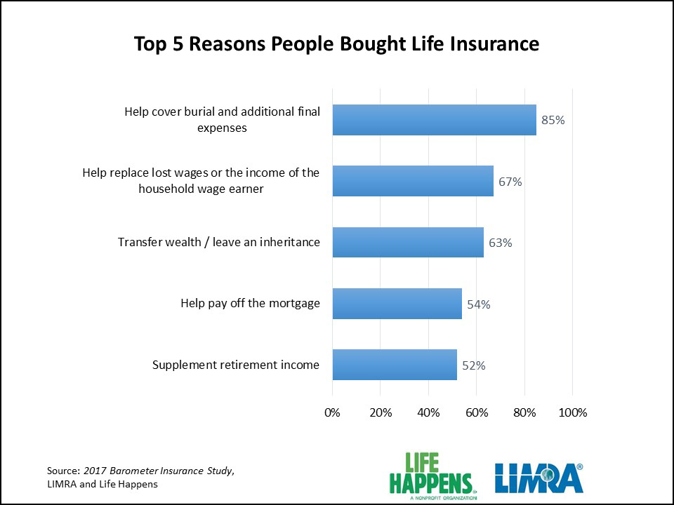 According to the 2017 Insurance Barometer Study*, Americans choose to purchase life insurance for many reasons. In most years the top five list has stayed the same, however this year there was a new reason in the number five spot. Fifty-two percent of those surveyed said they bought life insurance to supplement their retirement income.