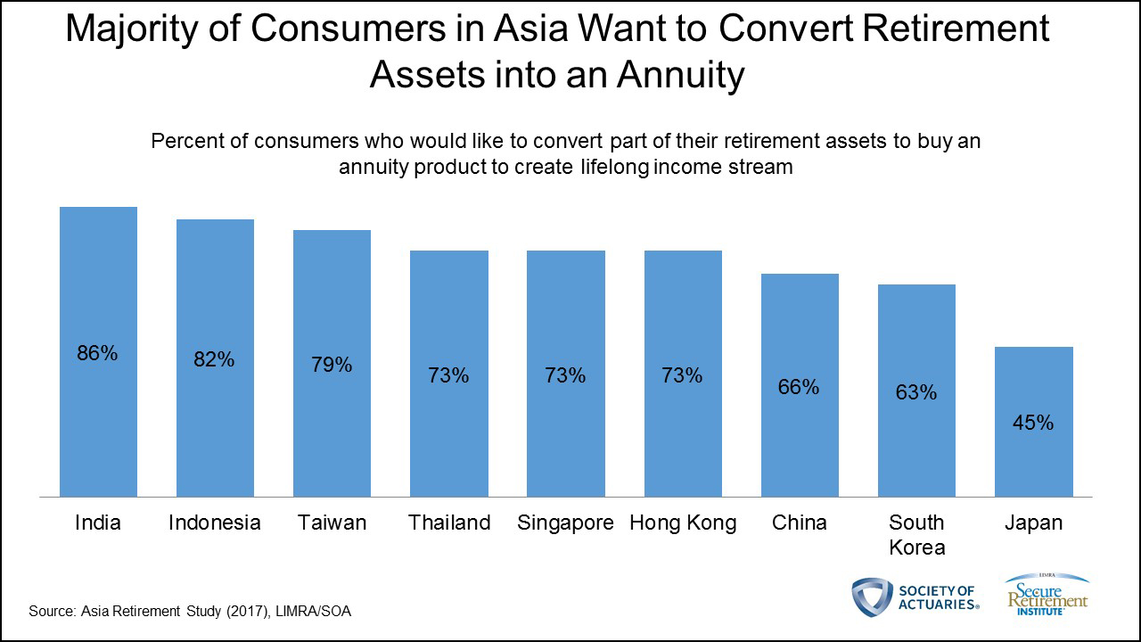 “It is not surprising that annuities strongly appealed to consumers in Asia as they are concerned about outliving their assets in retirement,” noted Hall. “Investing a portion of one’s assets toward a guaranteed lifetime income, such as an annuity, is one way to mitigate longevity risk.”